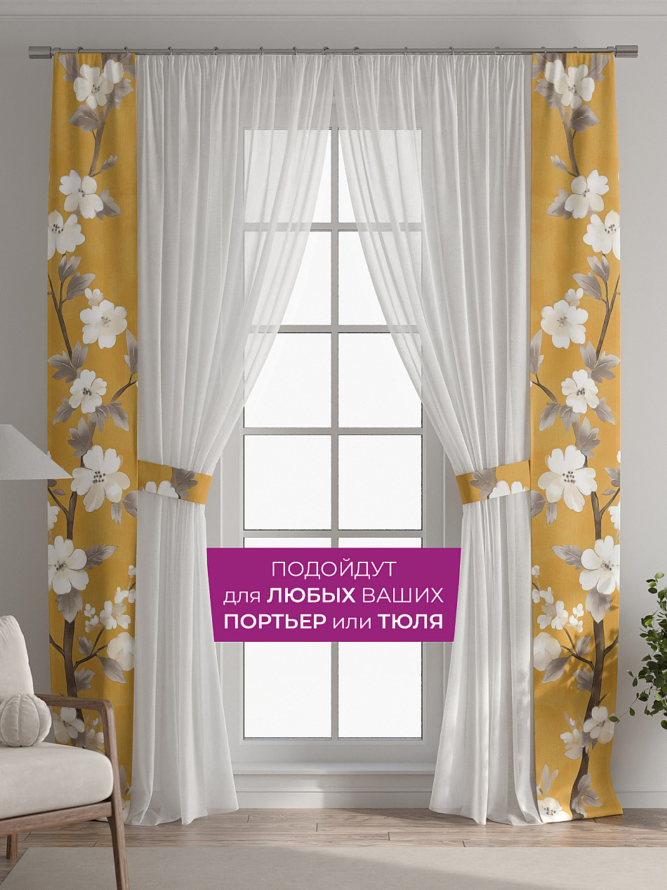 В комплект входят две узкие шторы шириной всего 38 см и длиной 260 см., которые навешиваются рядом с вашими занавесками или тюлем не утяжеляя вид окна и не препятствуя попаданию солнечного света в комнату. При этом выполняют роль подхватов и добавляют акцент в интерьер.