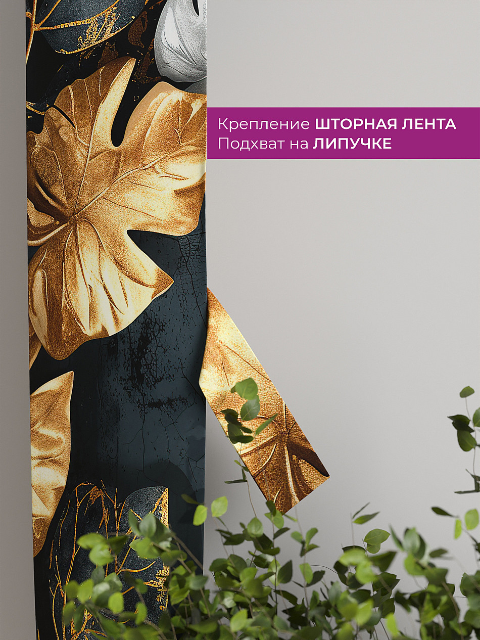 На высоте 125 см. пришит подхват (ширина 10 см.), который позволяет легко зафиксировать ваш тюль или шторы в нужном положении при помощи липучки.