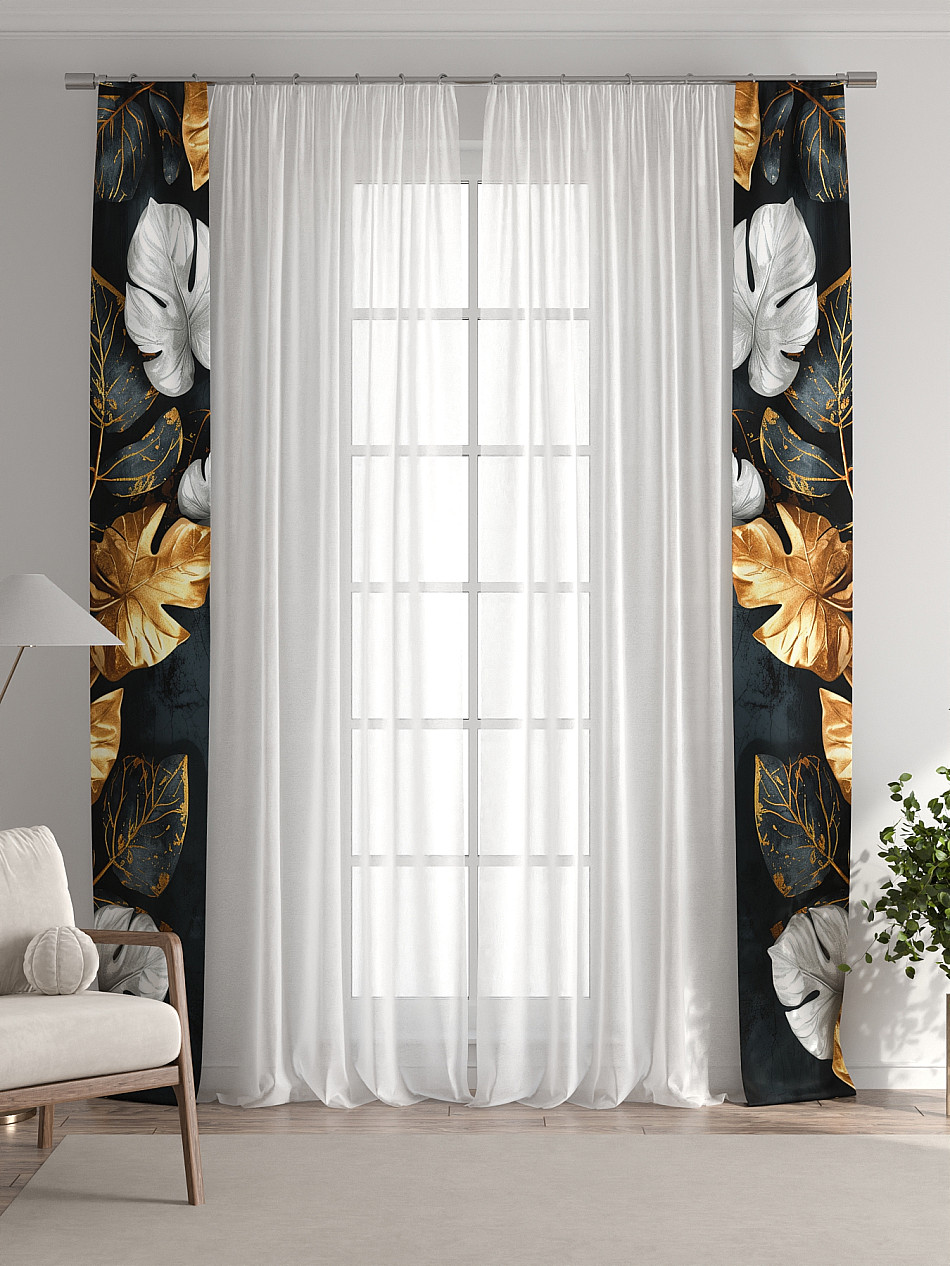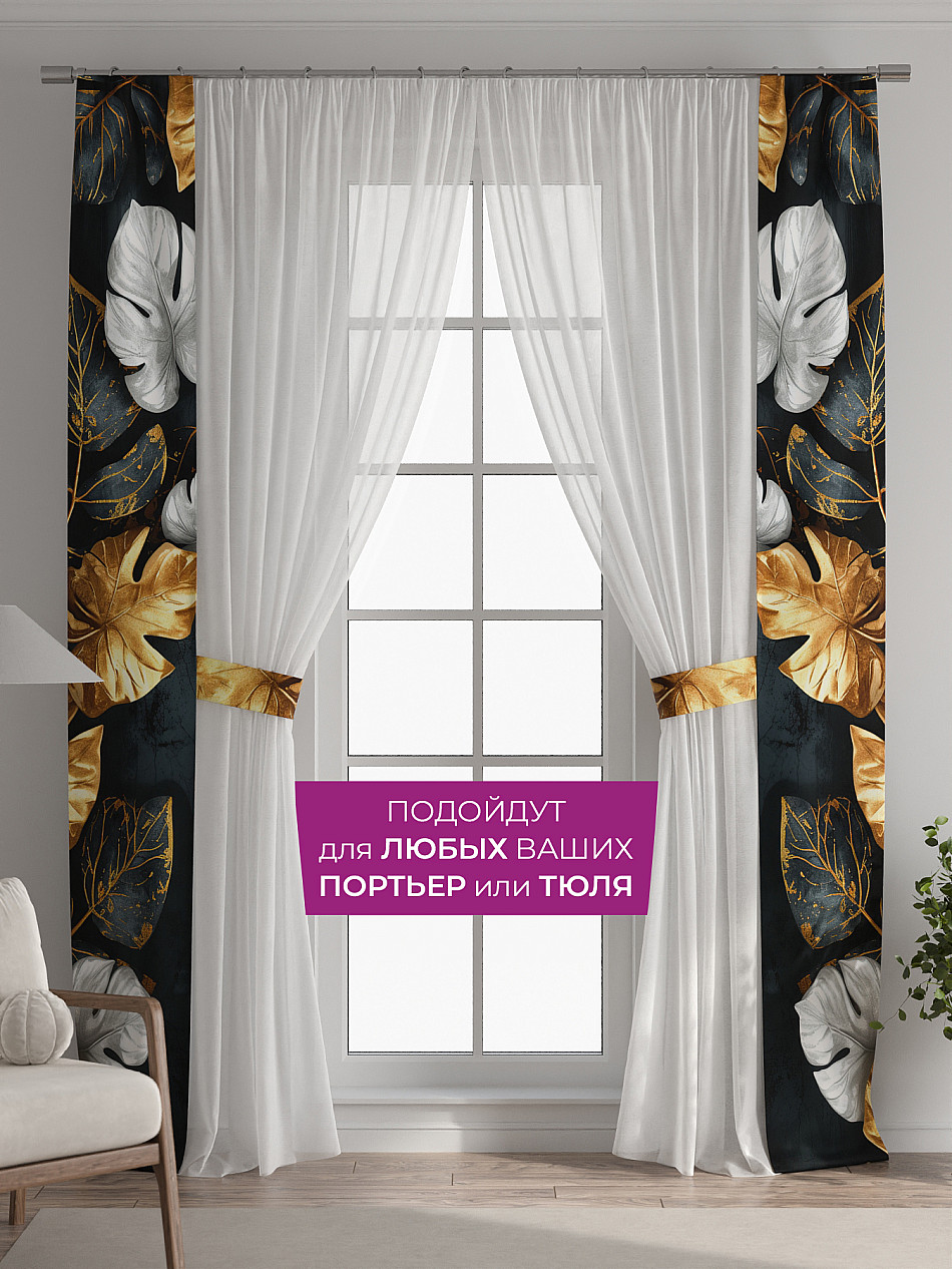 В комплект входят две узкие шторы шириной всего 38 см и длиной 260 см., которые навешиваются рядом с вашими занавесками или тюлем не утяжеляя вид окна и не препятствуя попаданию солнечного света в комнату. При этом выполняют роль подхватов и добавляют акцент в интерьер.