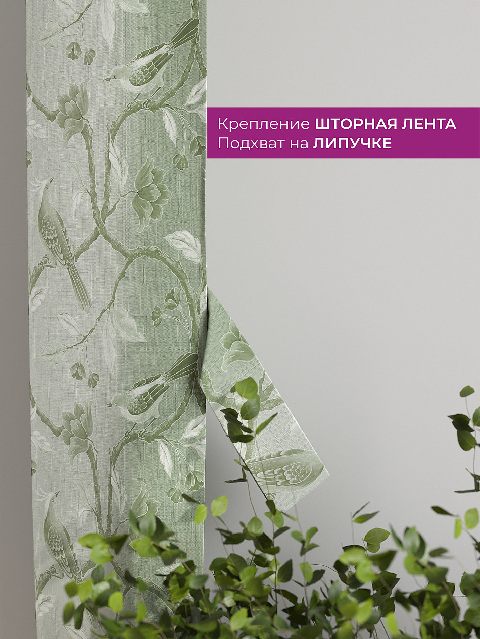 На высоте 125 см. пришит подхват (ширина 10 см.), который позволяет легко зафиксировать ваш тюль или шторы в нужном положении при помощи липучки.