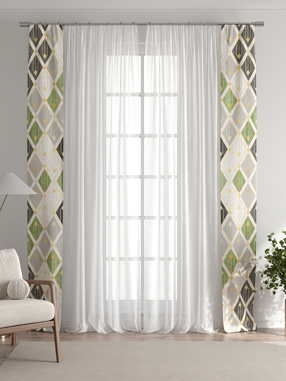 В комплект входят две узкие шторы шириной всего 38 см и длиной 260 см., которые навешиваются рядом с вашими занавесками или тюлем не утяжеляя вид окна и не препятствуя попаданию солнечного света в комнату. При этом выполняют роль подхватов и добавляют акцент в интерьер.