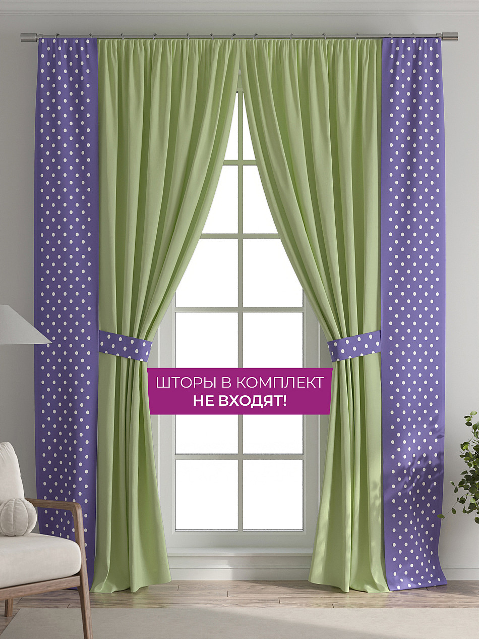 В комплект входят две узкие шторы шириной всего 38 см и длиной 260 см., которые навешиваются рядом с вашими занавесками или тюлем не утяжеляя вид окна и не препятствуя попаданию солнечного света в комнату. При этом выполняют роль подхватов и добавляют акцент в интерьер.