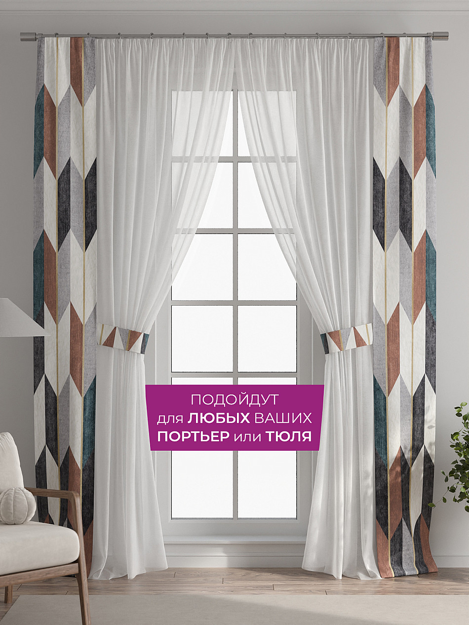 Если у вас уже есть портьеры или тюль, добавление наших узких штор с подхватами — самый быстрый, простой и доступный способ обновить интерьер, не меняя основной текстиль, а значит без лишних затрат.