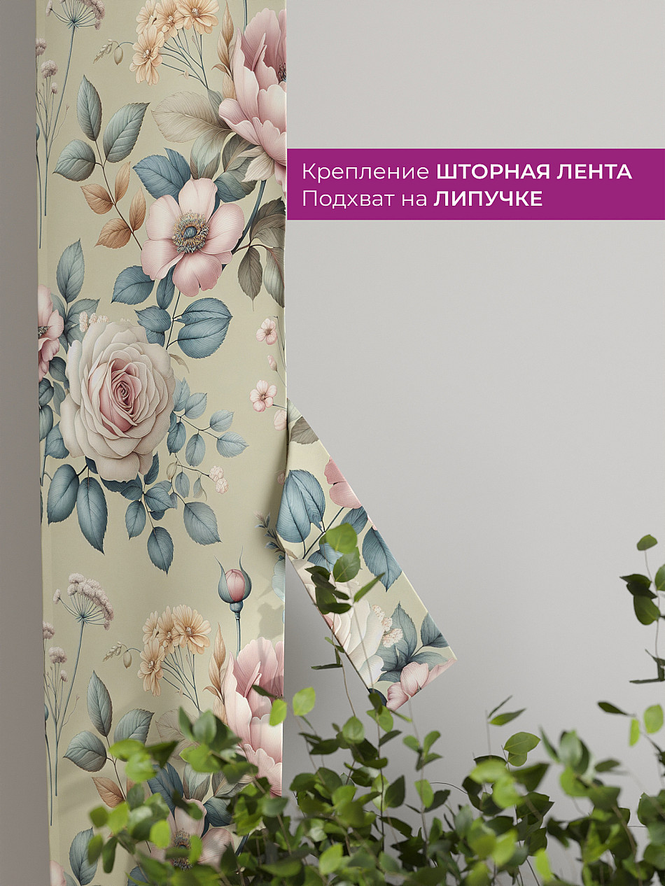 На высоте 125 см. пришит подхват (ширина 10 см.), который позволяет легко зафиксировать ваш тюль или шторы в нужном положении при помощи липучки.