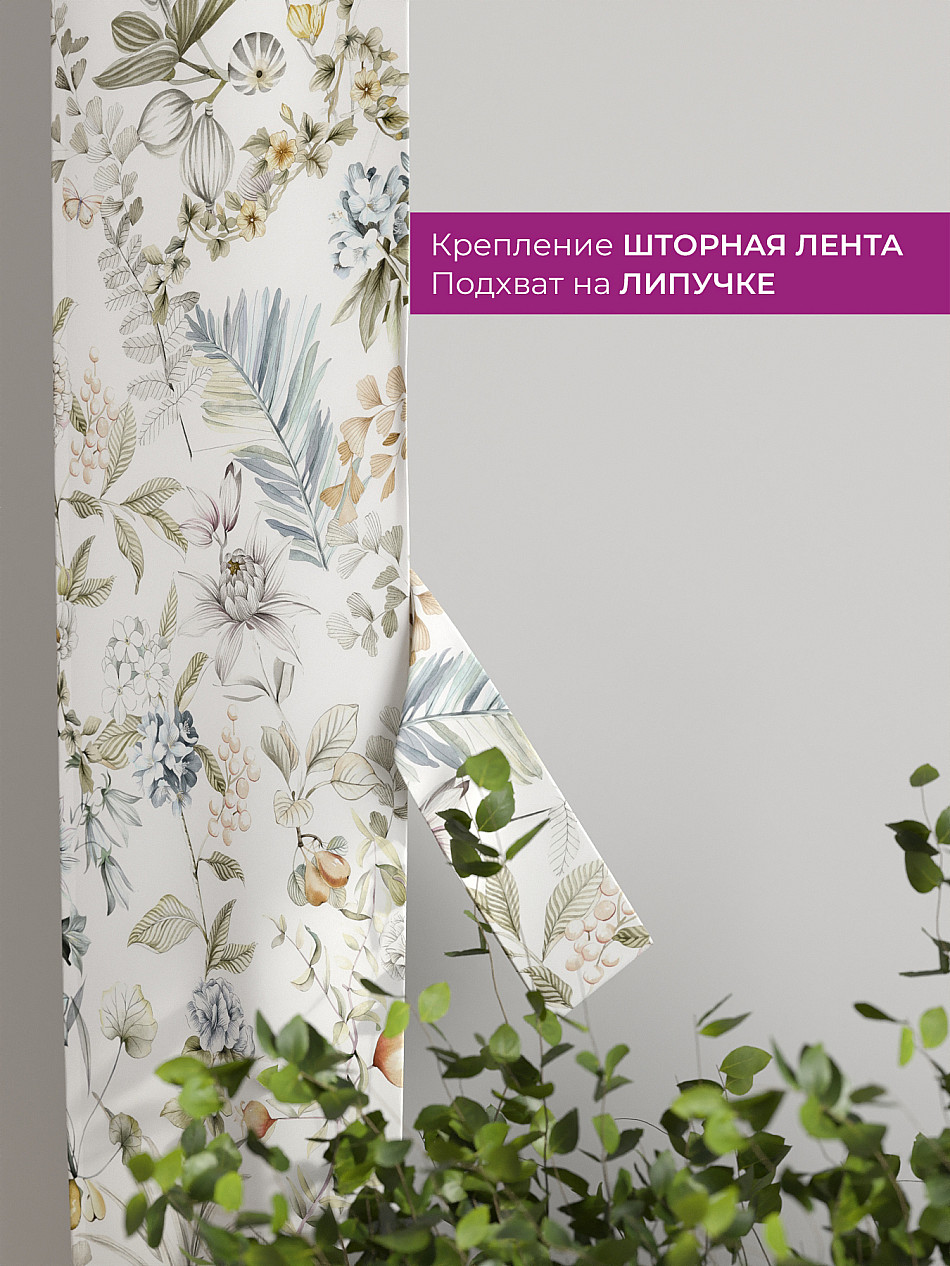 На высоте 125 см. пришит подхват (ширина 10 см.), который позволяет легко зафиксировать ваш тюль или шторы в нужном положении при помощи липучки.