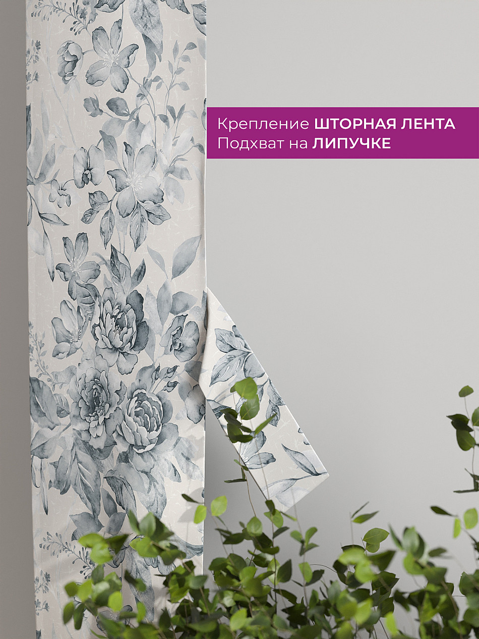 На высоте 125 см. пришит подхват (ширина 10 см.), который позволяет легко зафиксировать ваш тюль или шторы в нужном положении при помощи липучки.