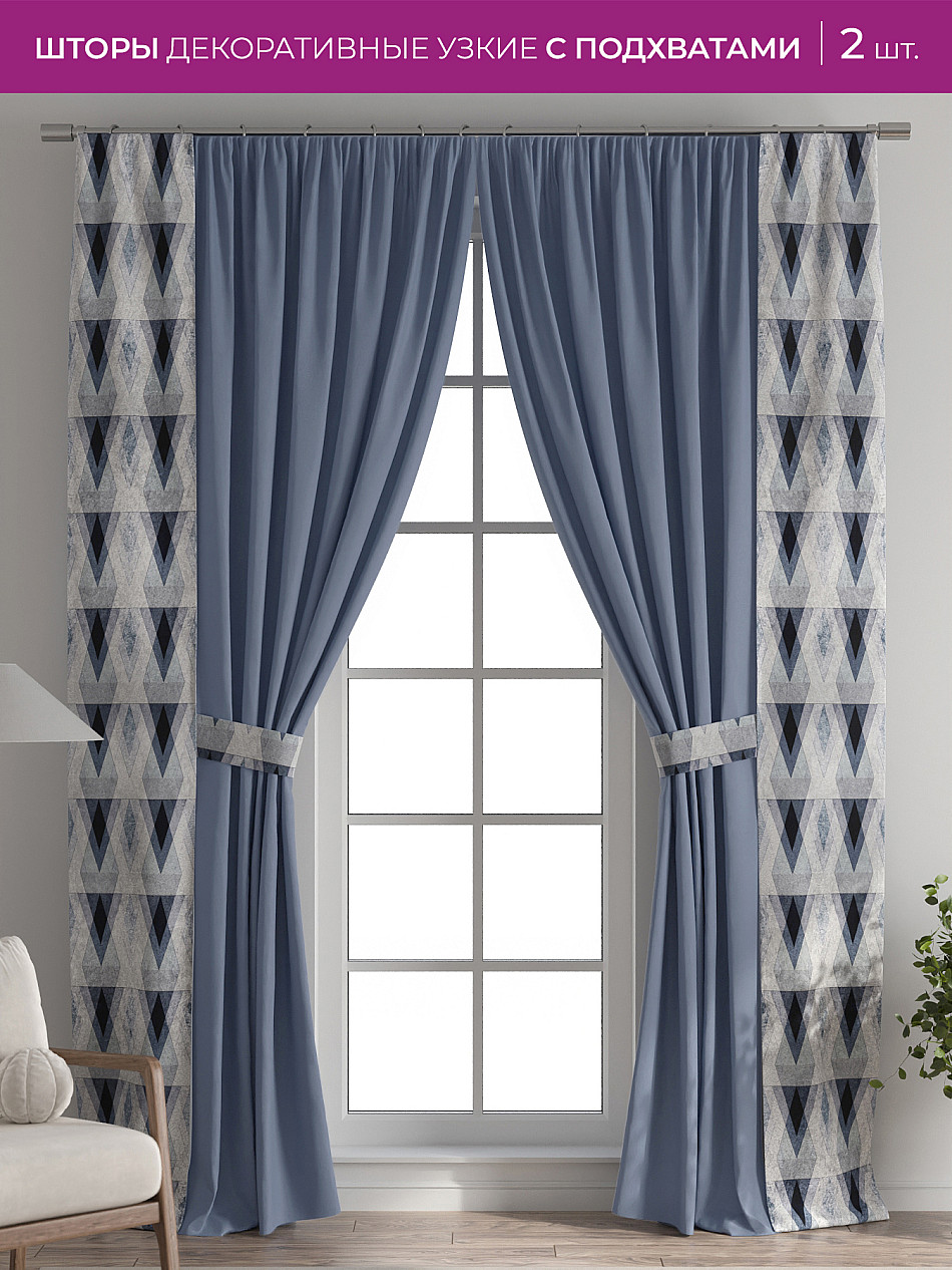 Если у вас уже есть портьеры или тюль, добавление наших узких штор с подхватами — самый быстрый, простой и доступный способ обновить интерьер, не меняя основной текстиль, а значит без лишних затрат.