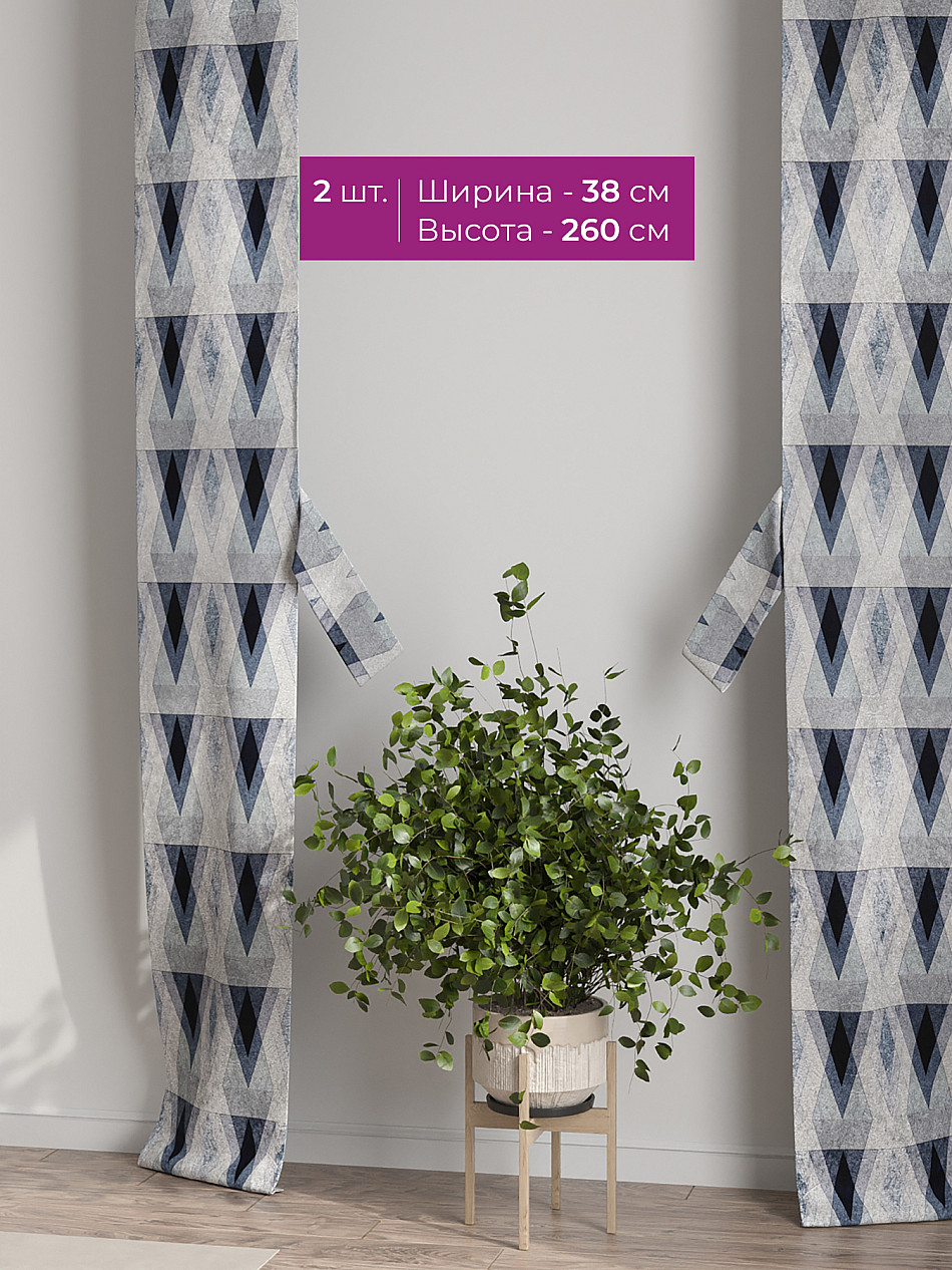 В комплект входят две узкие шторы шириной всего 38 см и длиной 260 см., которые навешиваются рядом с вашими занавесками или тюлем не утяжеляя вид окна и не препятствуя попаданию солнечного света в комнату. При этом выполняют роль подхватов и добавляют акцент в интерьер.
