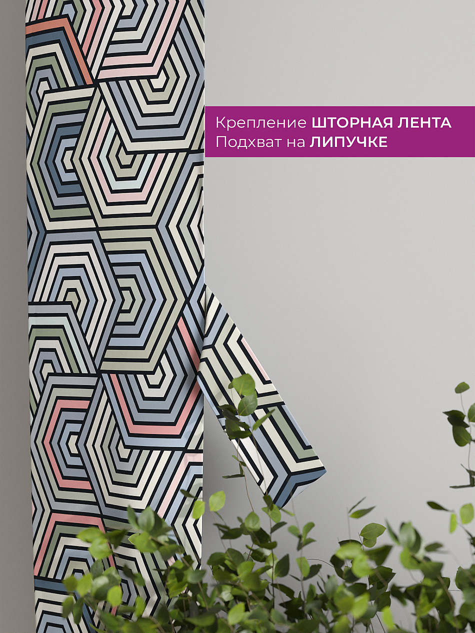 Комплект готов к развешиванию. По верхнему краю пристрочена шторная лента 6 см, с 2-мя рядами петель под крючки, что позволяет регулировать высоту. Одновременно имеется кулиска (карман для штанги), в которую можно продеть карниз любого диаметра.