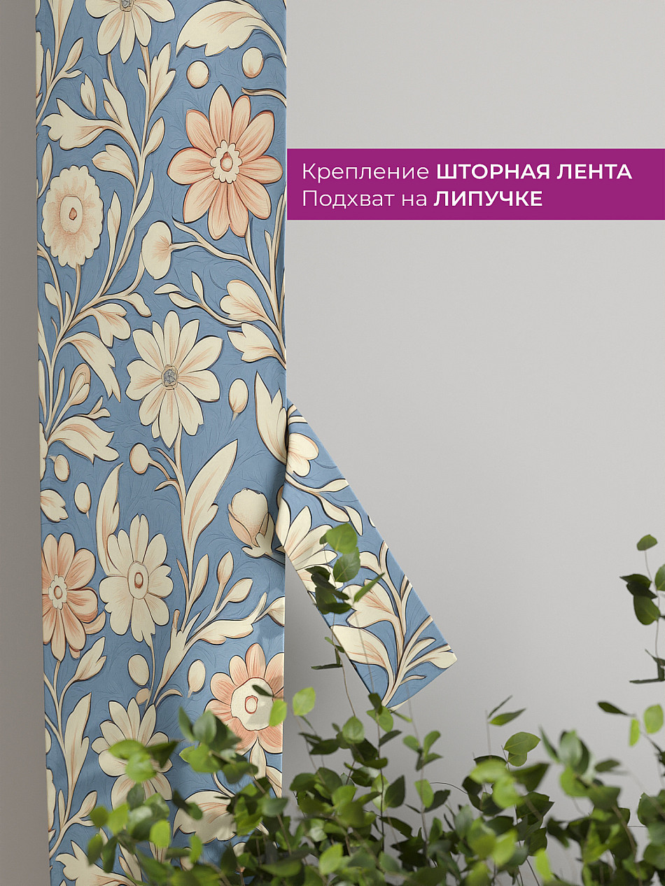 На высоте 125 см. пришит подхват (ширина 10 см.), который позволяет легко зафиксировать ваш тюль или шторы в нужном положении при помощи липучки.