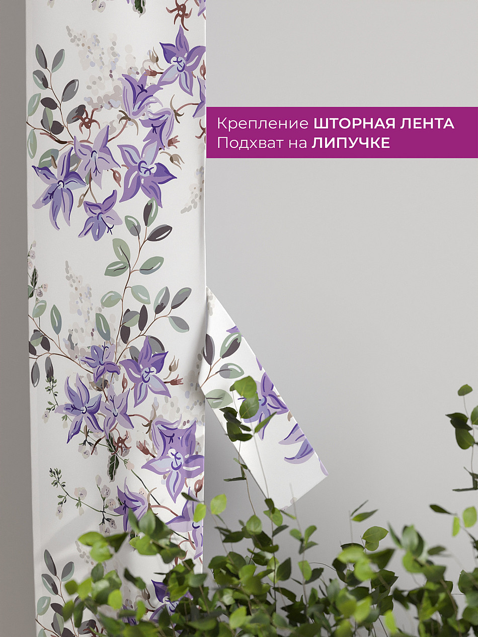 На высоте 125 см. пришит подхват (ширина 10 см.), который позволяет легко зафиксировать ваш тюль или шторы в нужном положении при помощи липучки.