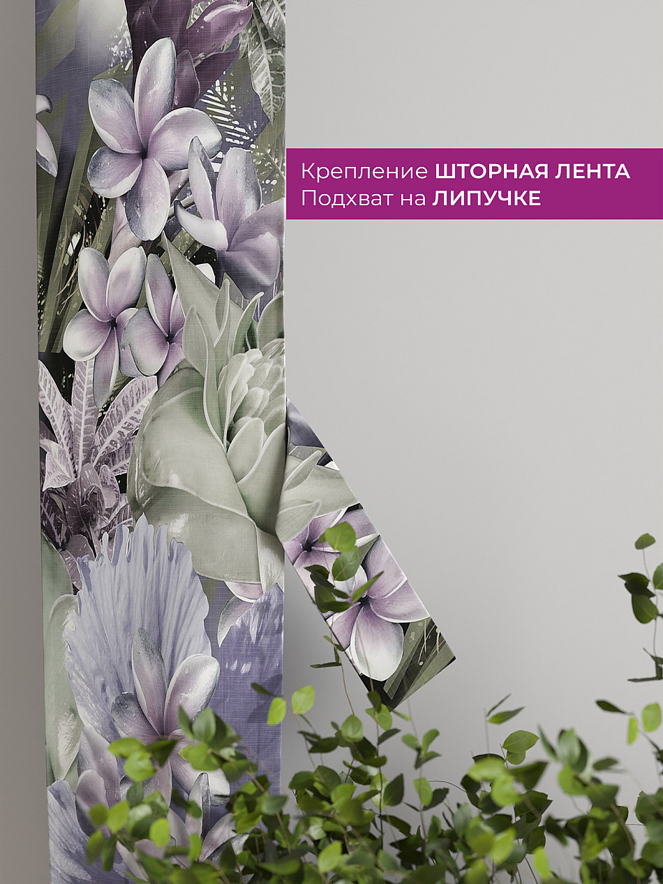 На высоте 125 см. пришит подхват (ширина 10 см.), который позволяет легко зафиксировать ваш тюль или шторы в нужном положении при помощи липучки.