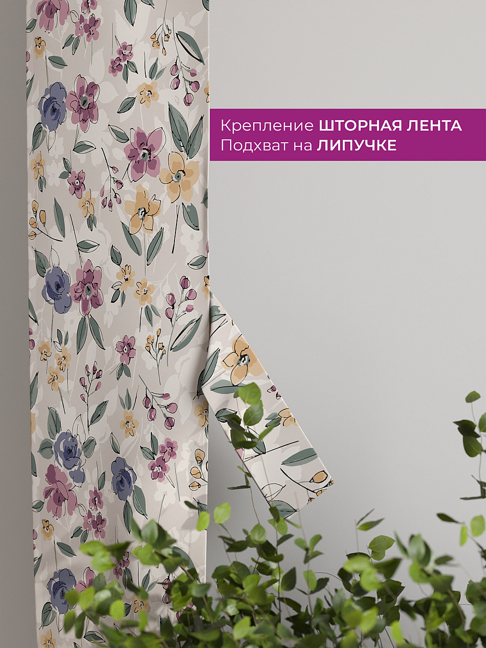 На высоте 125 см. пришит подхват (ширина 10 см.), который позволяет легко зафиксировать ваш тюль или шторы в нужном положении при помощи липучки.