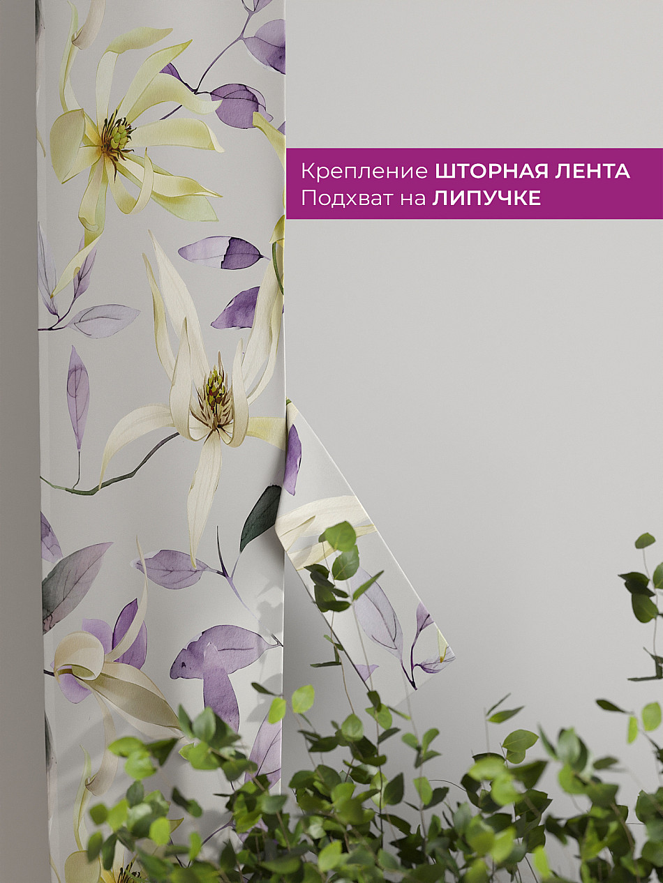 На высоте 125 см. пришит подхват (ширина 10 см.), который позволяет легко зафиксировать ваш тюль или шторы в нужном положении при помощи липучки.