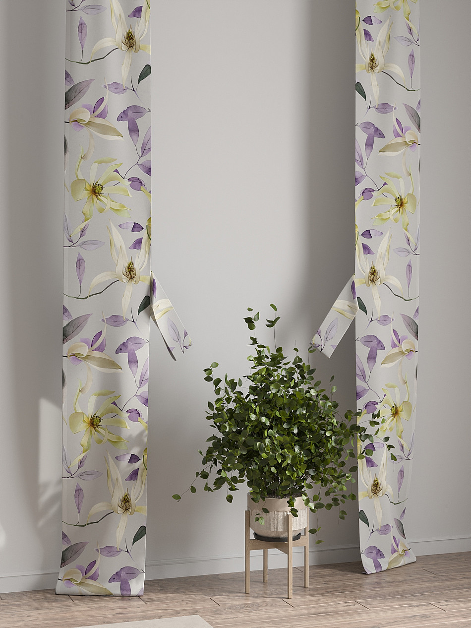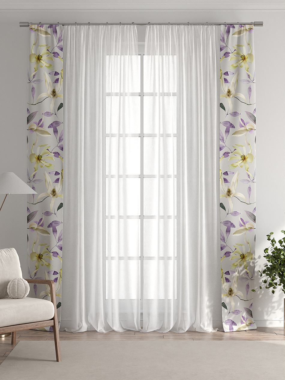 В комплект входят две узкие шторы шириной всего 38 см и длиной 260 см., которые навешиваются рядом с вашими занавесками или тюлем не утяжеляя вид окна и не препятствуя попаданию солнечного света в комнату. При этом выполняют роль подхватов и добавляют акцент в интерьер.