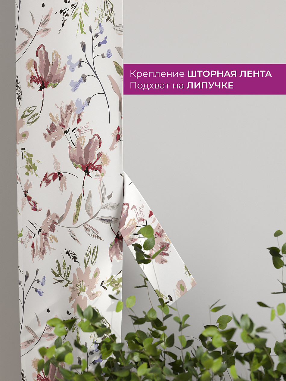 На высоте 125 см. пришит подхват (ширина 10 см.), который позволяет легко зафиксировать ваш тюль или шторы в нужном положении при помощи липучки.