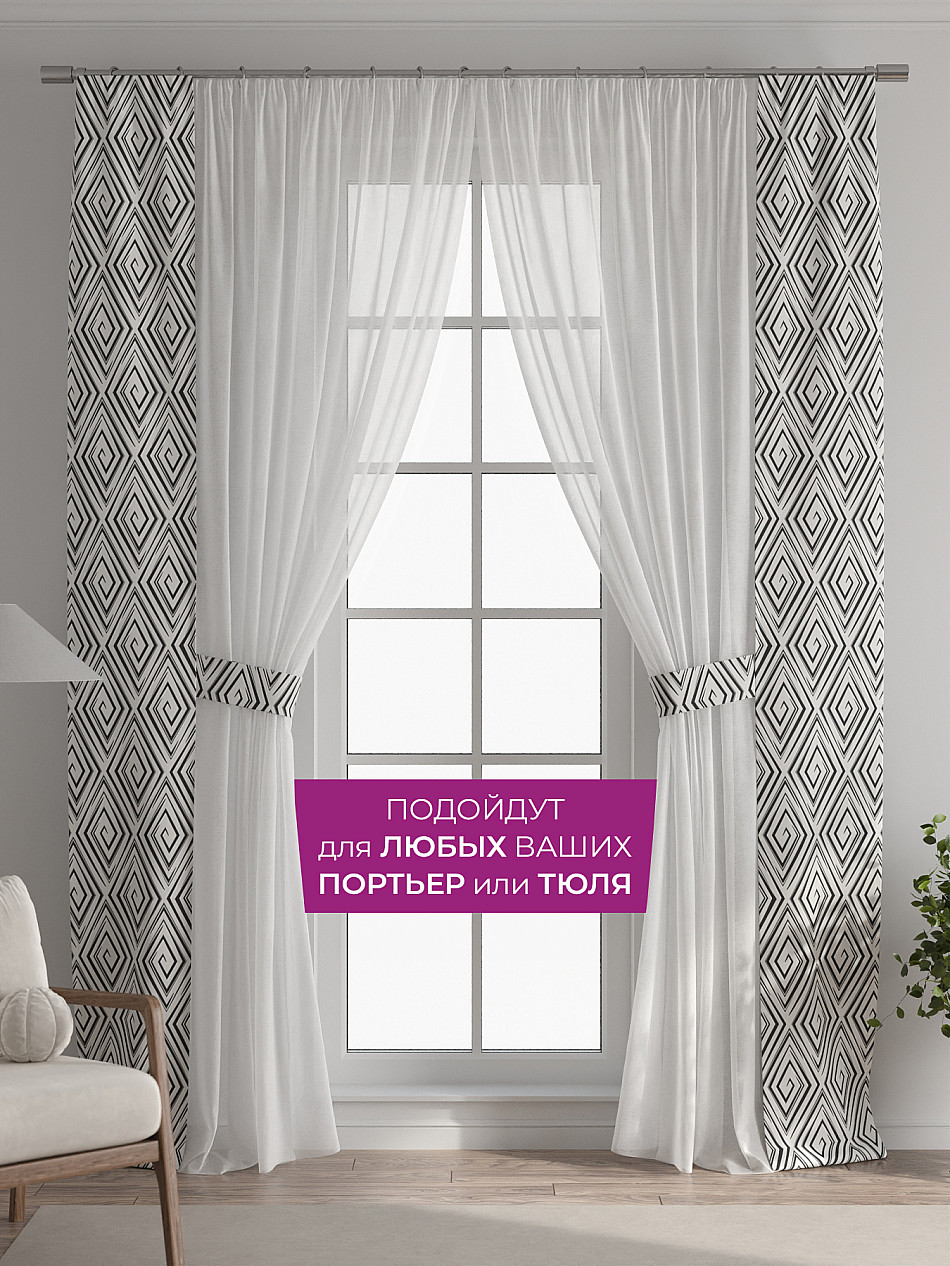 Если у вас уже есть портьеры или тюль, добавление наших узких штор с подхватами — самый быстрый, простой и доступный способ обновить интерьер, не меняя основной текстиль, а значит без лишних затрат.