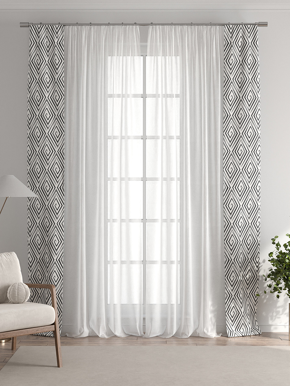 В комплект входят две узкие шторы шириной всего 38 см и длиной 260 см., которые навешиваются рядом с вашими занавесками или тюлем не утяжеляя вид окна и не препятствуя попаданию солнечного света в комнату. При этом выполняют роль подхватов и добавляют акцент в интерьер.