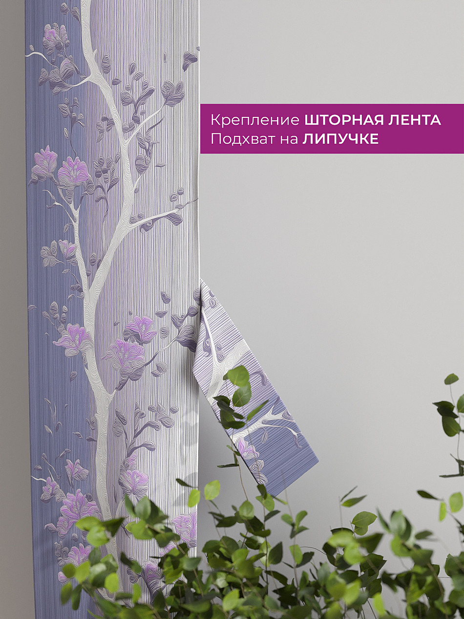 Комплект готов к развешиванию. По верхнему краю пристрочена шторная лента 6 см, с 2-мя рядами петель под крючки, что позволяет регулировать высоту. Одновременно имеется кулиска (карман для штанги), в которую можно продеть карниз любого диаметра.