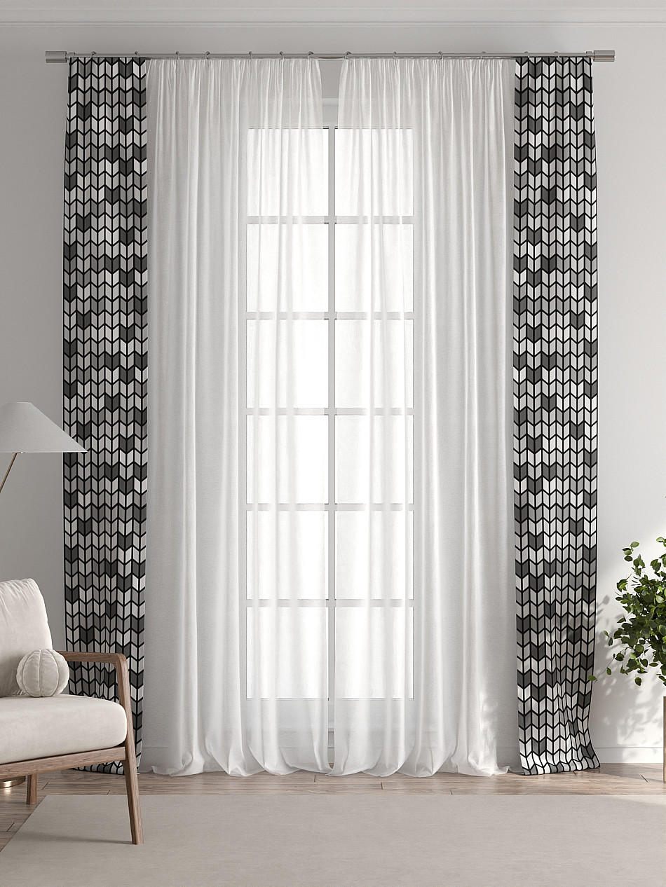 Если у вас уже есть портьеры или тюль, добавление наших узких штор с подхватами — самый быстрый, простой и доступный способ обновить интерьер, не меняя основной текстиль, а значит без лишних затрат.