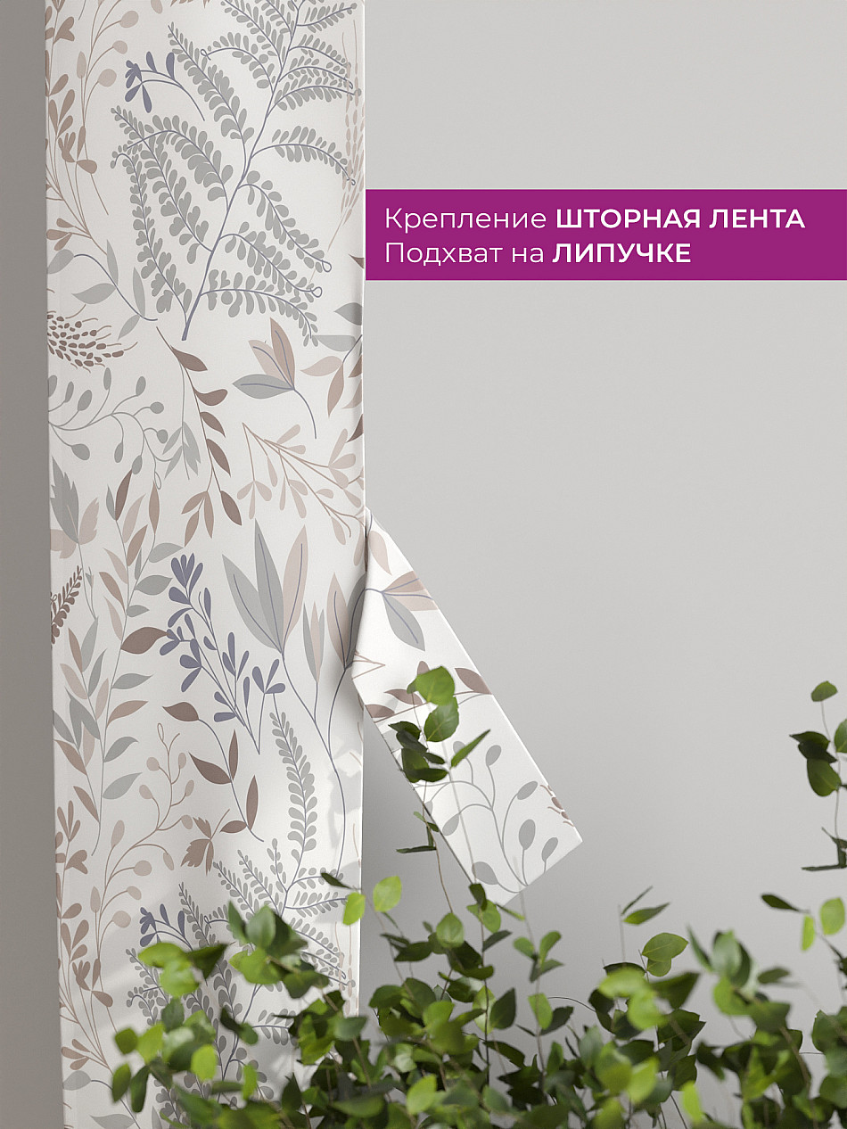 На высоте 125 см. пришит подхват (ширина 10 см.), который позволяет легко зафиксировать ваш тюль или шторы в нужном положении при помощи липучки.