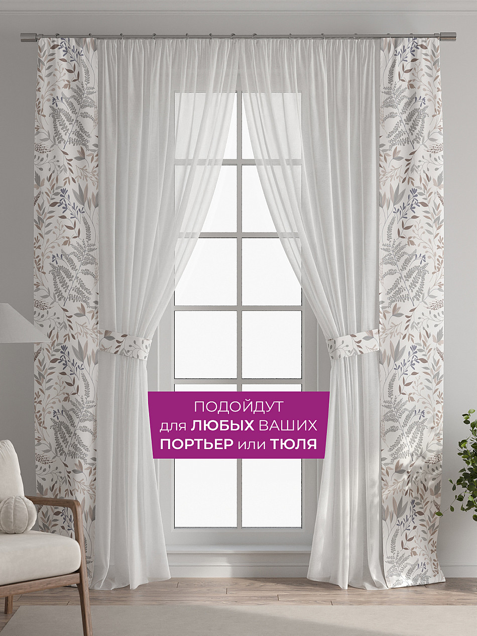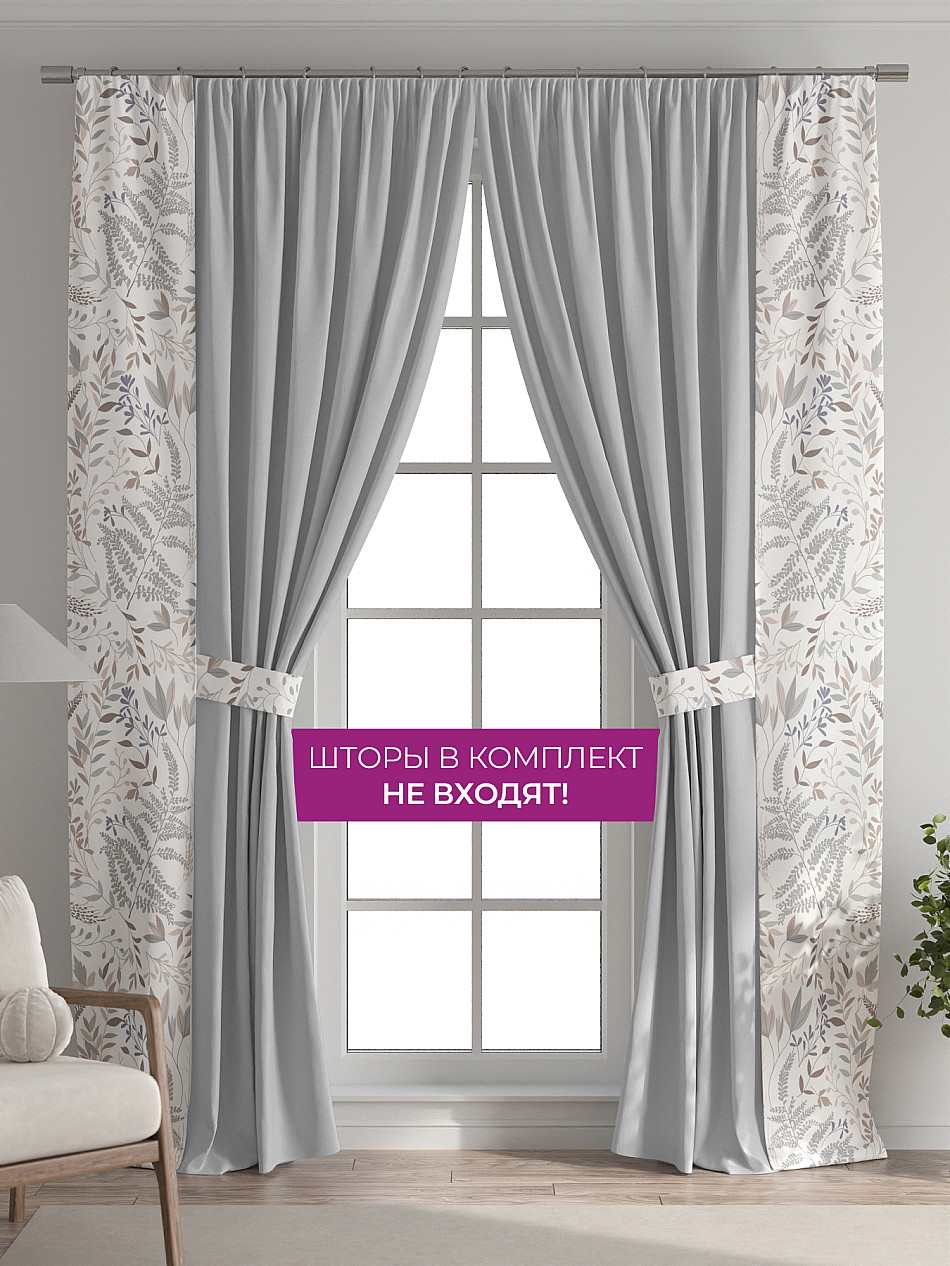 В комплект входят две узкие шторы шириной всего 38 см и длиной 260 см., которые навешиваются рядом с вашими занавесками или тюлем не утяжеляя вид окна и не препятствуя попаданию солнечного света в комнату. При этом выполняют роль подхватов и добавляют акцент в интерьер.
