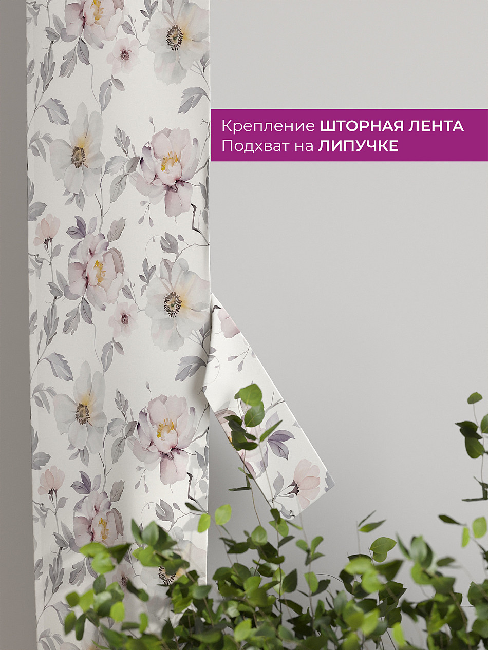 На высоте 125 см. пришит подхват (ширина 10 см.), который позволяет легко зафиксировать ваш тюль или шторы в нужном положении при помощи липучки.