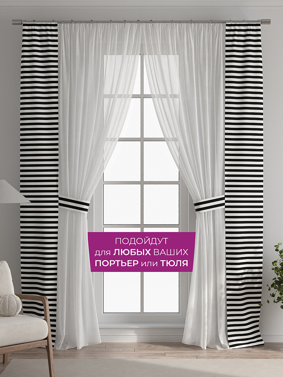 Если у вас уже есть портьеры или тюль, добавление наших узких штор с подхватами — самый быстрый, простой и доступный способ обновить интерьер, не меняя основной текстиль, а значит без лишних затрат.
