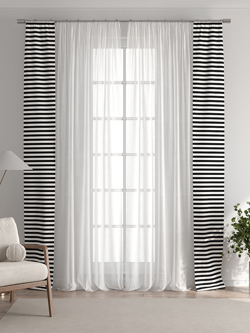 В комплект входят две узкие шторы шириной всего 38 см и длиной 260 см., которые навешиваются рядом с вашими занавесками или тюлем не утяжеляя вид окна и не препятствуя попаданию солнечного света в комнату. При этом выполняют роль подхватов и добавляют акцент в интерьер.
