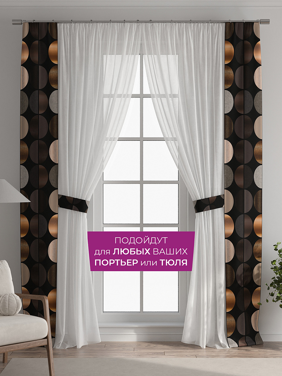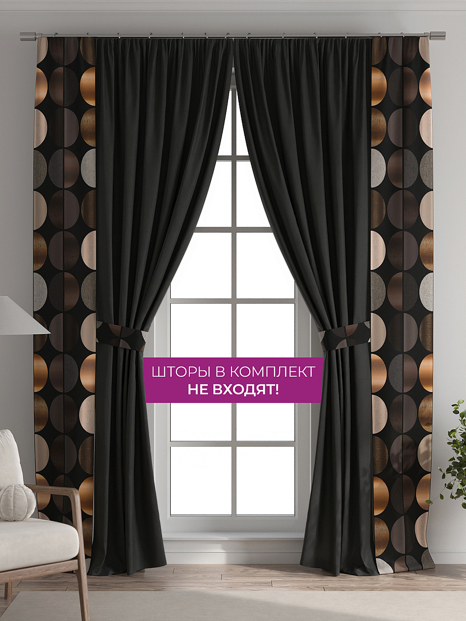 В комплект входят две узкие шторы шириной всего 38 см и длиной 260 см., которые навешиваются рядом с вашими занавесками или тюлем не утяжеляя вид окна и не препятствуя попаданию солнечного света в комнату. При этом выполняют роль подхватов и добавляют акцент в интерьер.