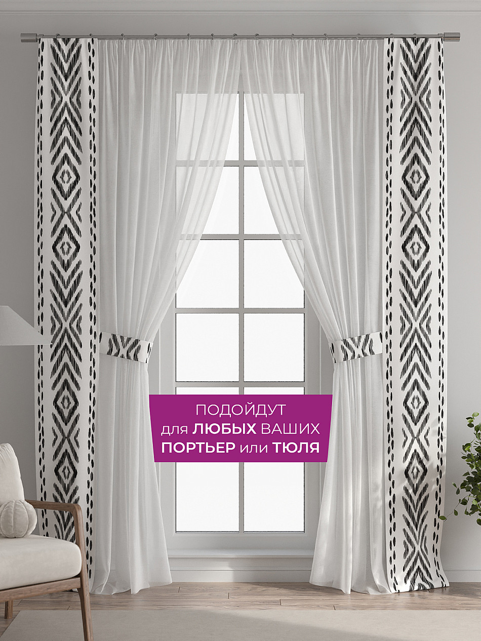 Если у вас уже есть портьеры или тюль, добавление наших узких штор с подхватами — самый быстрый, простой и доступный способ обновить интерьер, не меняя основной текстиль, а значит без лишних затрат.