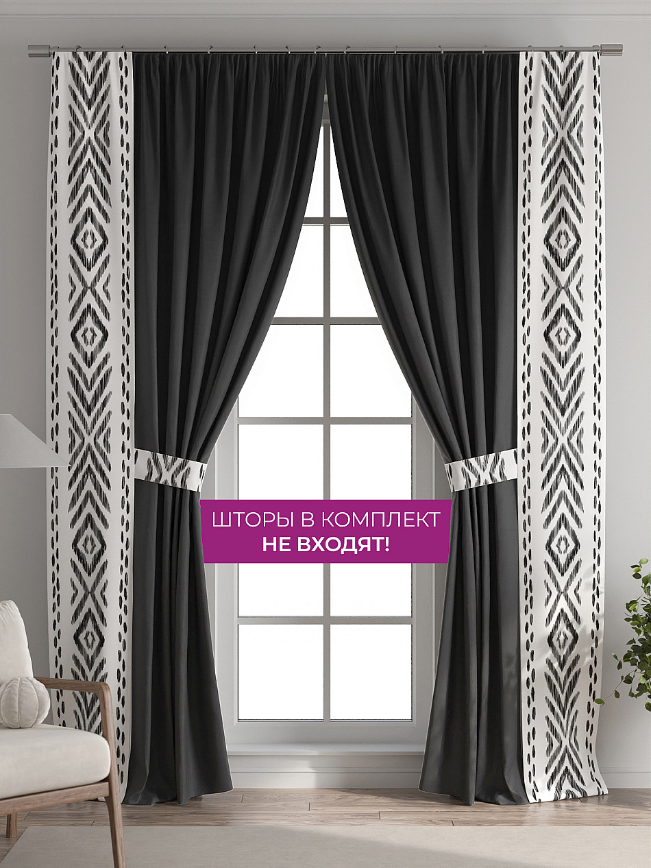 В комплект входят две узкие шторы шириной всего 38 см и длиной 260 см., которые навешиваются рядом с вашими занавесками или тюлем не утяжеляя вид окна и не препятствуя попаданию солнечного света в комнату. При этом выполняют роль подхватов и добавляют акцент в интерьер.