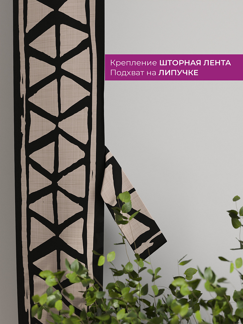 Комплект готов к развешиванию. По верхнему краю пристрочена шторная лента 6 см, с 2-мя рядами петель под крючки, что позволяет регулировать высоту. Одновременно имеется кулиска (карман для штанги), в которую можно продеть карниз любого диаметра.