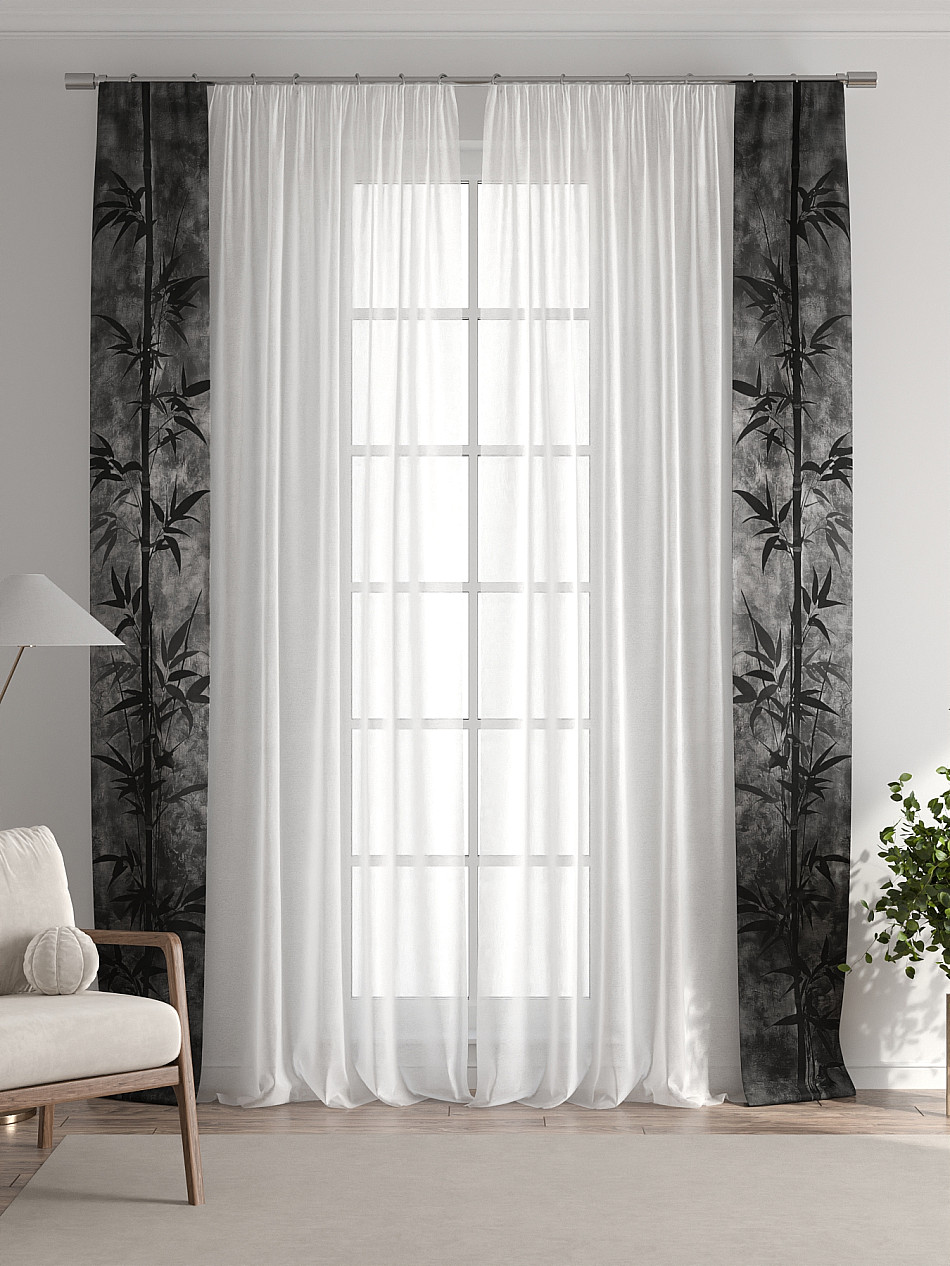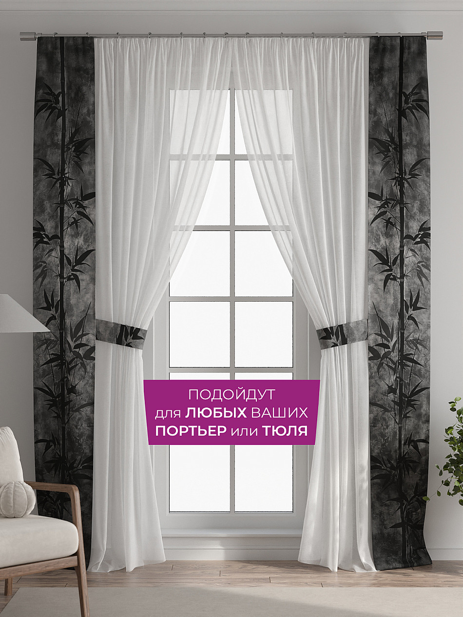 В комплект входят две узкие шторы шириной всего 38 см и длиной 260 см., которые навешиваются рядом с вашими занавесками или тюлем не утяжеляя вид окна и не препятствуя попаданию солнечного света в комнату. При этом выполняют роль подхватов и добавляют акцент в интерьер.