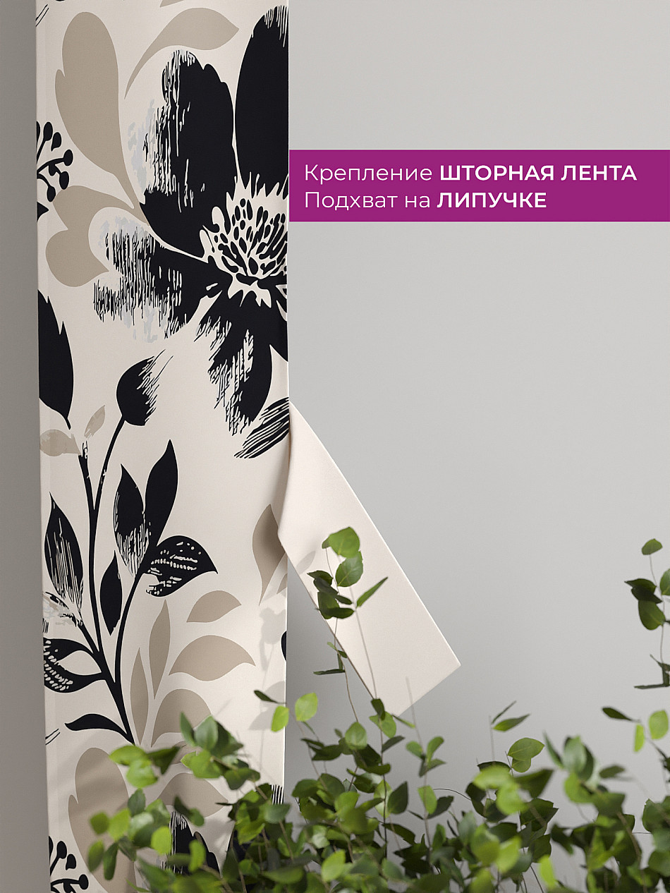 На высоте 125 см. пришит подхват (ширина 10 см.), который позволяет легко зафиксировать ваш тюль или шторы в нужном положении при помощи липучки.