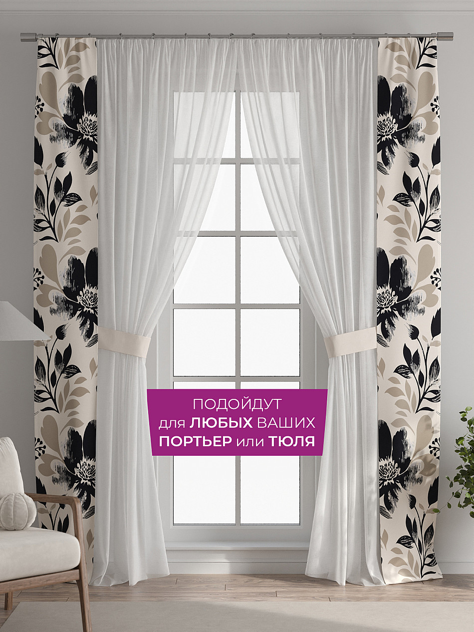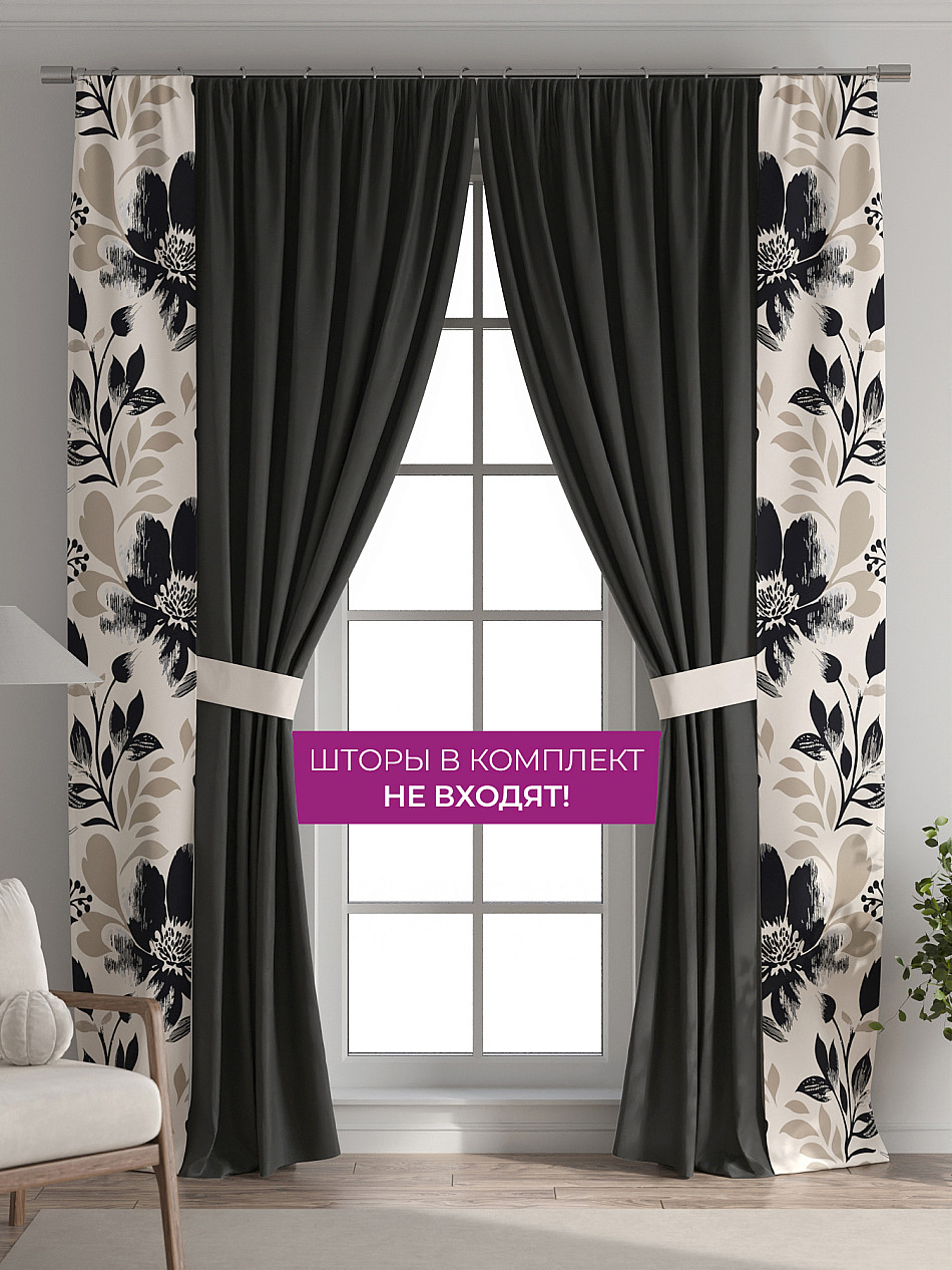 В комплект входят две узкие шторы шириной всего 38 см и длиной 260 см., которые навешиваются рядом с вашими занавесками или тюлем не утяжеляя вид окна и не препятствуя попаданию солнечного света в комнату. При этом выполняют роль подхватов и добавляют акцент в интерьер.
