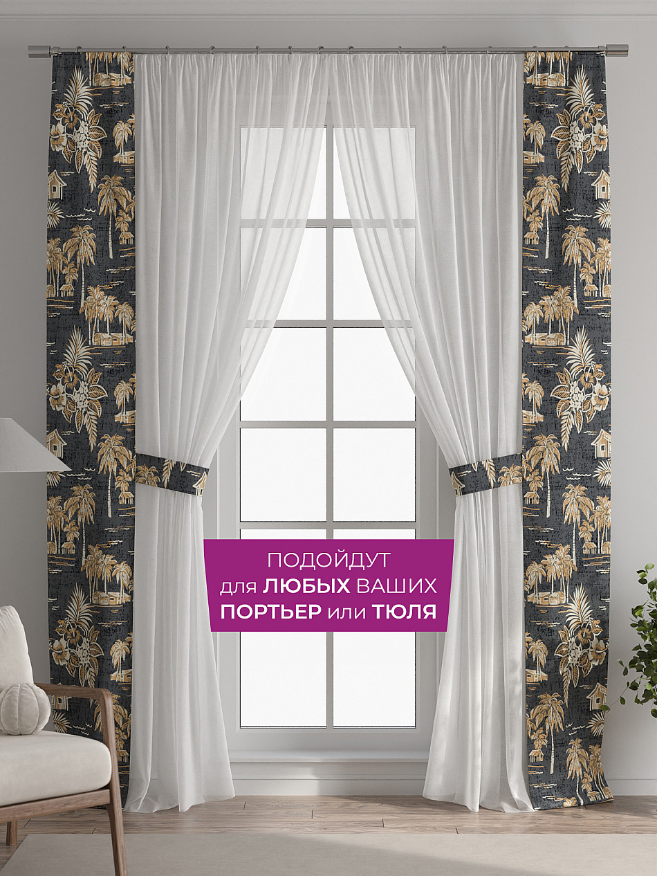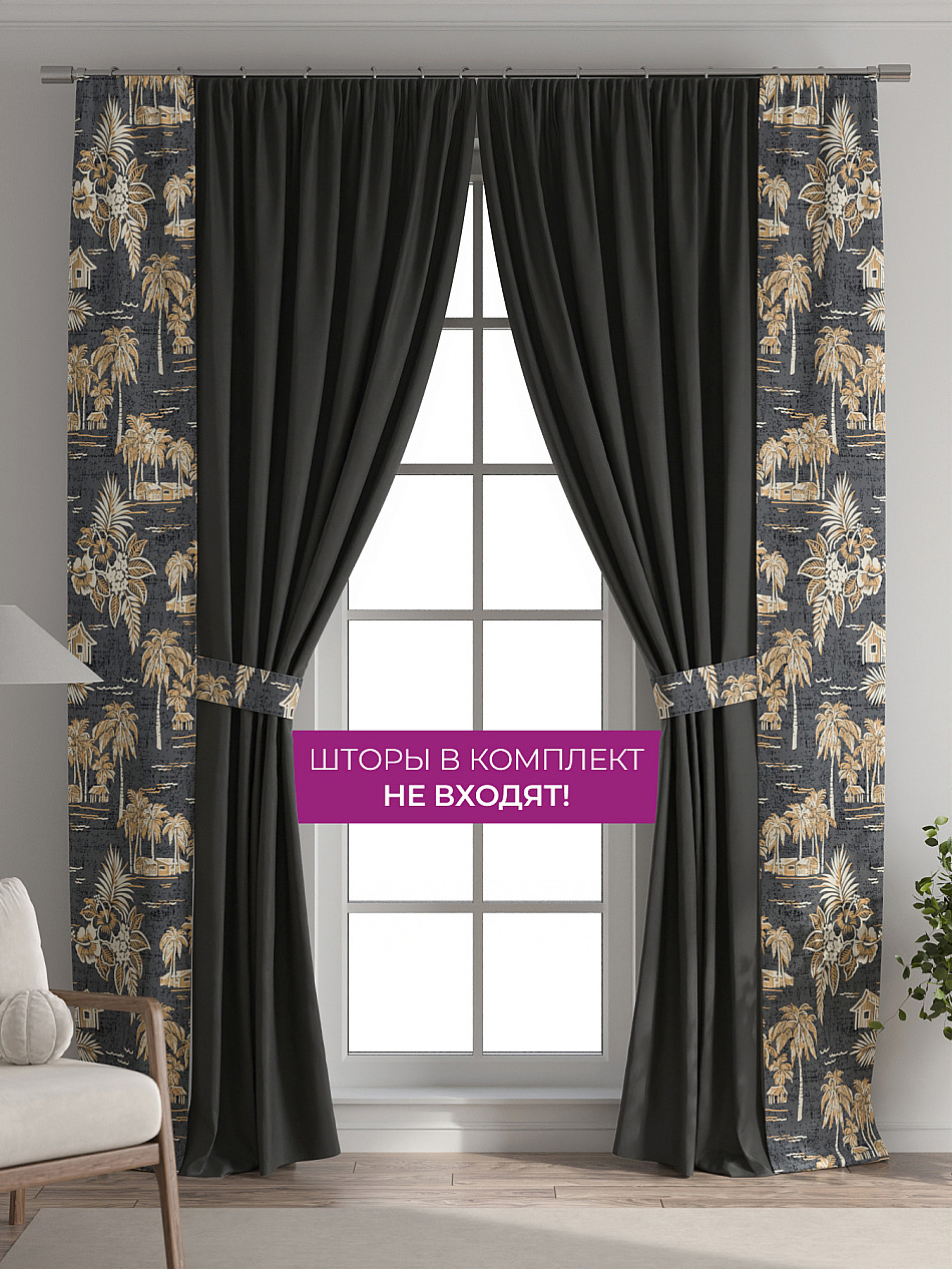 В комплект входят две узкие шторы шириной всего 38 см и длиной 260 см., которые навешиваются рядом с вашими занавесками или тюлем не утяжеляя вид окна и не препятствуя попаданию солнечного света в комнату. При этом выполняют роль подхватов и добавляют акцент в интерьер.