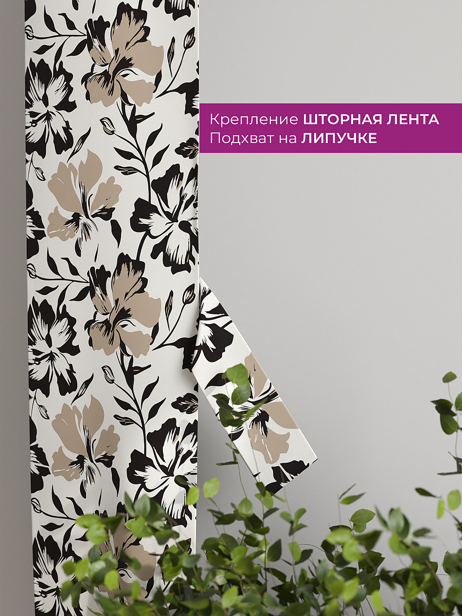 Комплект готов к развешиванию. По верхнему краю пристрочена шторная лента 6 см, с 2-мя рядами петель под крючки, что позволяет регулировать высоту. Одновременно имеется кулиска (карман для штанги), в которую можно продеть карниз любого диаметра.