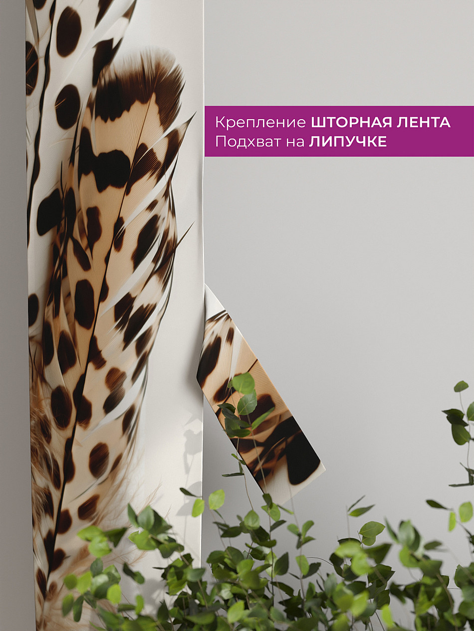На высоте 125 см. пришит подхват (ширина 10 см.), который позволяет легко зафиксировать ваш тюль или шторы в нужном положении при помощи липучки.