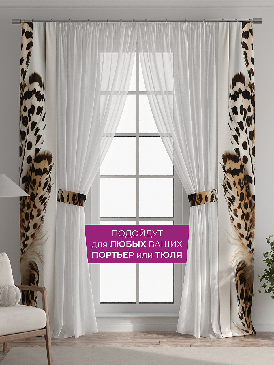 В комплект входят две узкие шторы шириной всего 38 см и длиной 260 см., которые навешиваются рядом с вашими занавесками или тюлем не утяжеляя вид окна и не препятствуя попаданию солнечного света в комнату. При этом выполняют роль подхватов и добавляют акцент в интерьер.