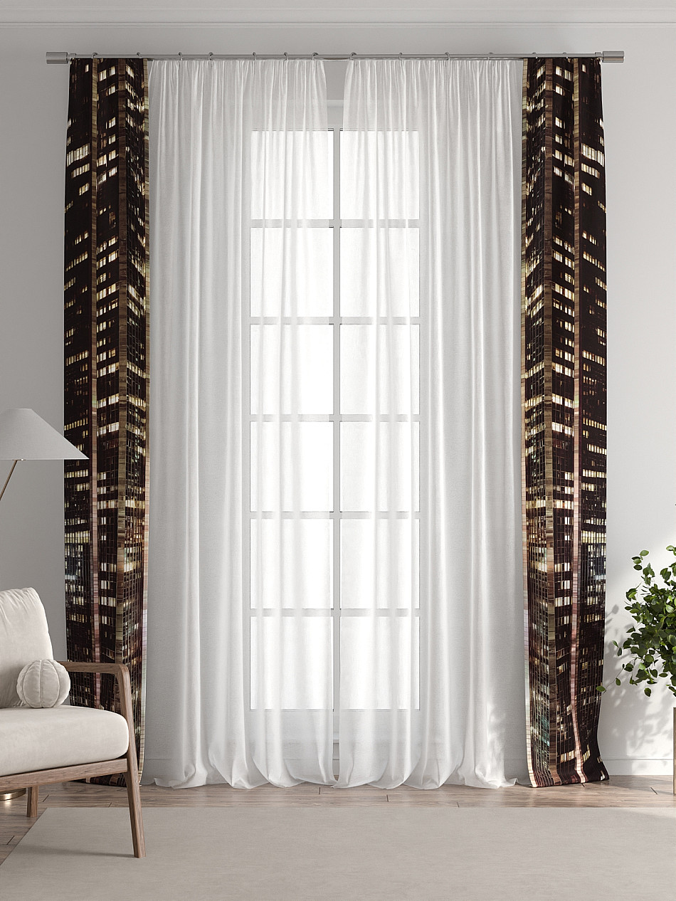 В комплект входят две узкие шторы шириной всего 38 см и длиной 260 см., которые навешиваются рядом с вашими занавесками или тюлем не утяжеляя вид окна и не препятствуя попаданию солнечного света в комнату. При этом выполняют роль подхватов и добавляют акцент в интерьер.