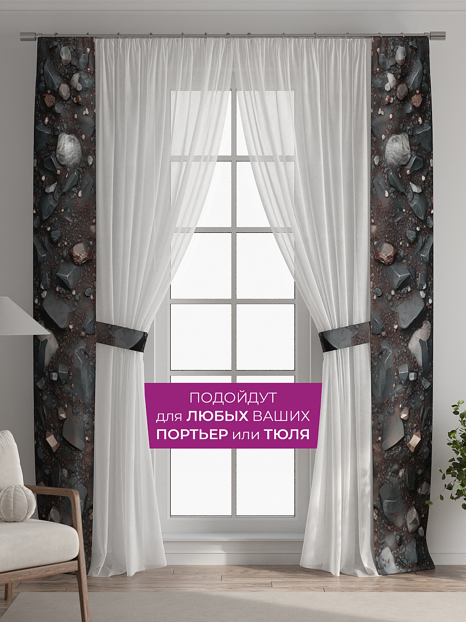 В комплект входят две узкие шторы шириной всего 38 см и длиной 260 см., которые навешиваются рядом с вашими занавесками или тюлем не утяжеляя вид окна и не препятствуя попаданию солнечного света в комнату. При этом выполняют роль подхватов и добавляют акцент в интерьер.