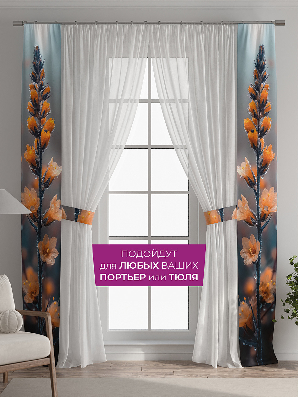 В комплект входят две узкие шторы шириной всего 38 см и длиной 260 см., которые навешиваются рядом с вашими занавесками или тюлем не утяжеляя вид окна и не препятствуя попаданию солнечного света в комнату. При этом выполняют роль подхватов и добавляют акцент в интерьер.
