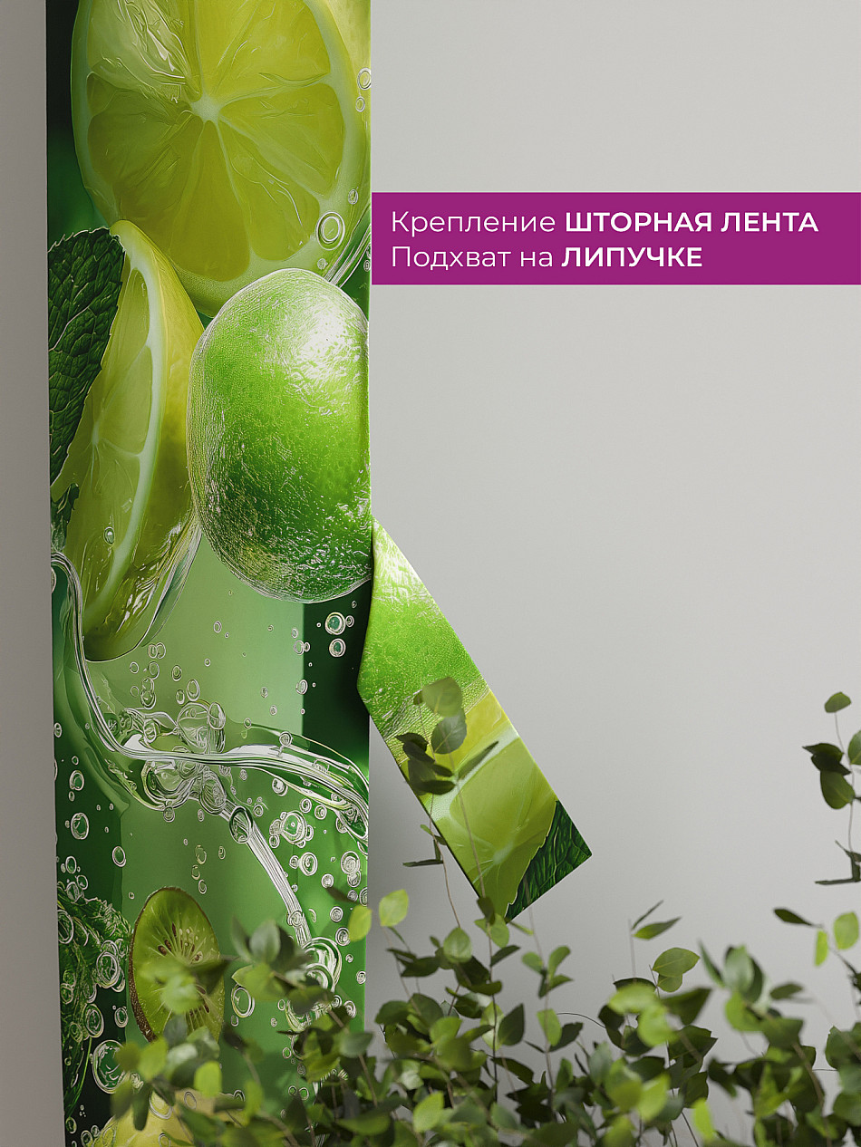 На высоте 125 см. пришит подхват (ширина 10 см.), который позволяет легко зафиксировать ваш тюль или шторы в нужном положении при помощи липучки.