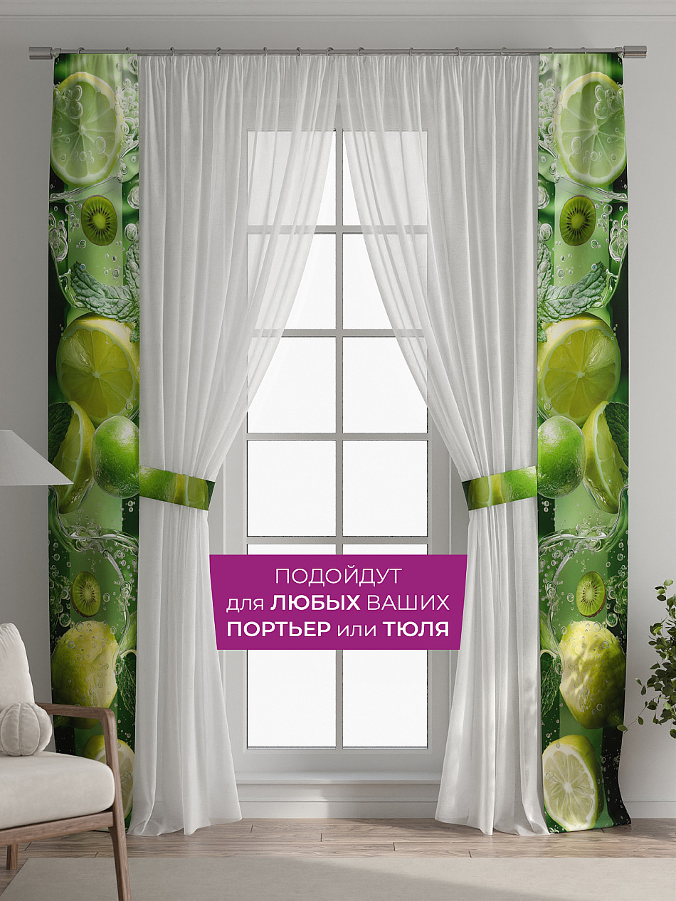 В комплект входят две узкие шторы шириной всего 38 см и длиной 260 см., которые навешиваются рядом с вашими занавесками или тюлем не утяжеляя вид окна и не препятствуя попаданию солнечного света в комнату. При этом выполняют роль подхватов и добавляют акцент в интерьер.