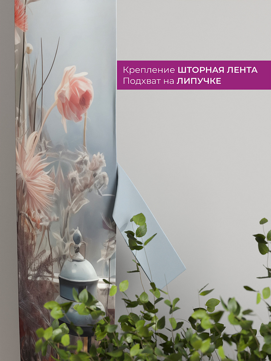 На высоте 125 см. пришит подхват (ширина 10 см.), который позволяет легко зафиксировать ваш тюль или шторы в нужном положении при помощи липучки.
