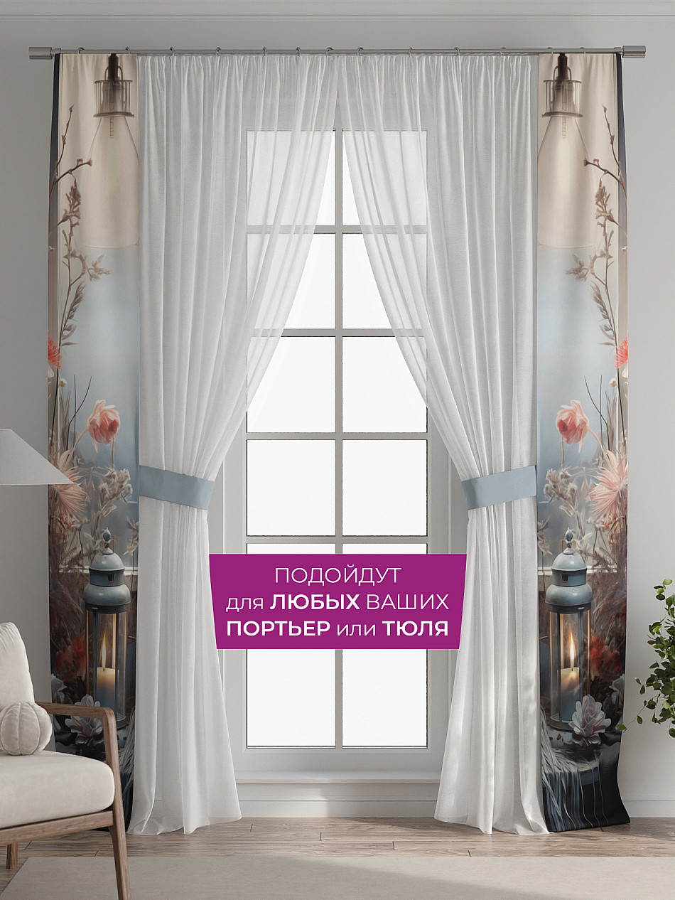 В комплект входят две узкие шторы шириной всего 38 см и длиной 260 см., которые навешиваются рядом с вашими занавесками или тюлем не утяжеляя вид окна и не препятствуя попаданию солнечного света в комнату. При этом выполняют роль подхватов и добавляют акцент в интерьер.