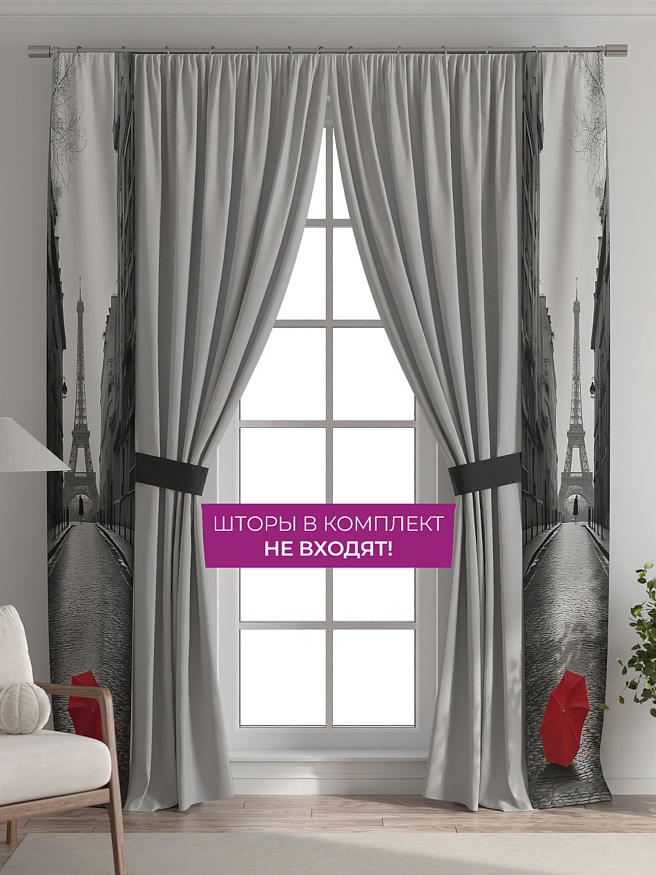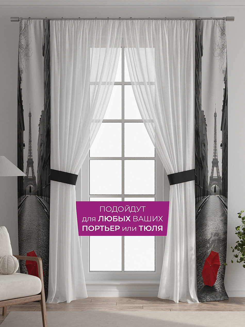 В комплект входят две узкие шторы шириной всего 38 см и длиной 260 см., которые навешиваются рядом с вашими занавесками или тюлем не утяжеляя вид окна и не препятствуя попаданию солнечного света в комнату. При этом выполняют роль подхватов и добавляют акцент в интерьер.