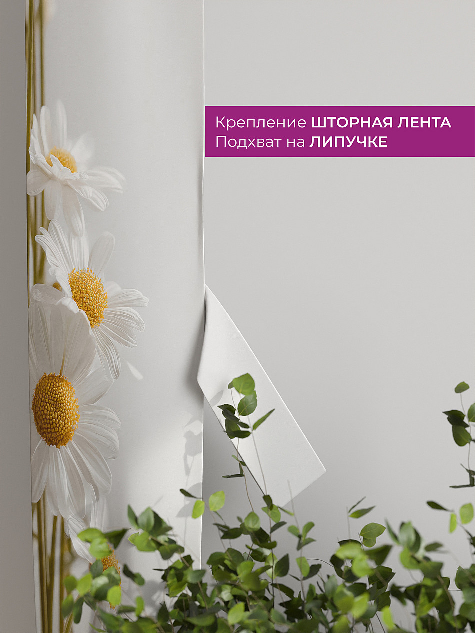 На высоте 125 см. пришит подхват (ширина 10 см.), который позволяет легко зафиксировать ваш тюль или шторы в нужном положении при помощи липучки.