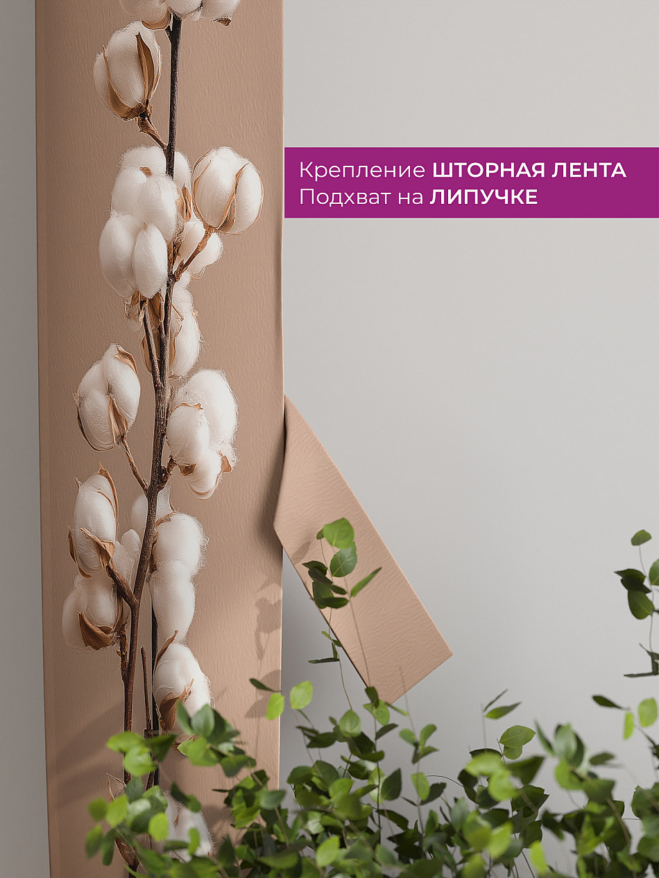 На высоте 125 см. пришит подхват (ширина 10 см.), который позволяет легко зафиксировать ваш тюль или шторы в нужном положении при помощи липучки.
